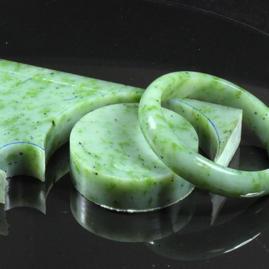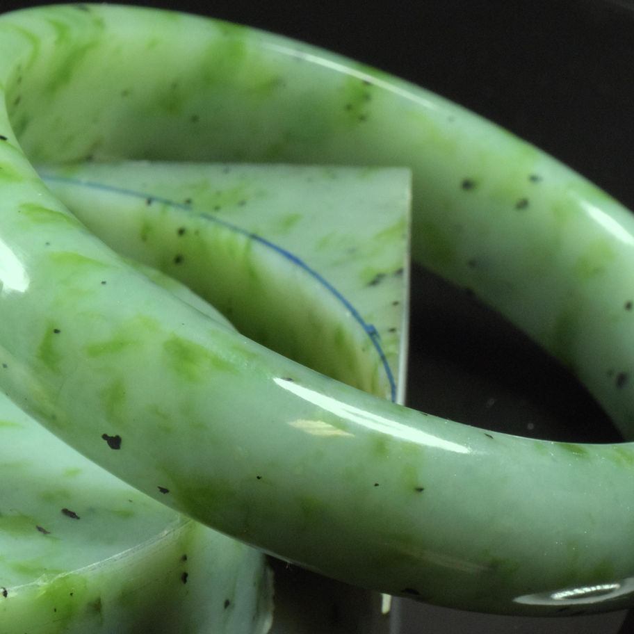 I am adding additional information on the grading of each bangle. The purpose is to help educate all buyers and give people the appropriate information to better understand their purchase, and in the case of “high-end bangles,” their investment. This grading information is my personal attempt to inform others of the qualities of the material on a particular item. There are so many false jades, modified jade and simply inferior jade being passed off to uninformed buyers. I usually only work with high quality, untreated materials, but the materials do vary in quality even within the same stone so this will point out and identify everything about each bangle. When artists work on a piece of jade (in this case, a bangle), they get to personally know everything about the bangle. Many online sellers (including ETSY), are selling bangles made by production methods (CNC or many operators doing only one part of the process at a time), which also means a seller will have no personal knowledge of the item.