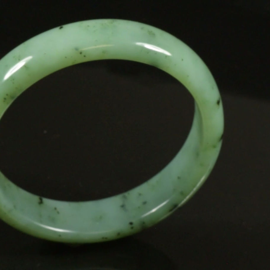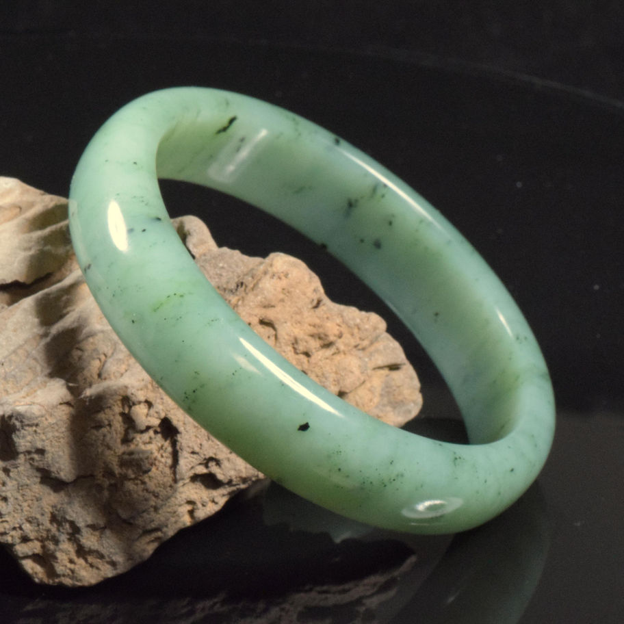 I am adding additional information on the grading of each bangle. The purpose is to help educate all buyers and give people the appropriate information to better understand their purchase, and in the case of “high-end bangles,” their investment. This grading information is my personal attempt to inform others of the qualities of the material on a particular item. There are so many false jades, modified jade and simply inferior jade being passed off to uninformed buyers. I usually only work with high quality, untreated materials, but the materials do vary in quality even within the same stone so this will point out and identify everything about each bangle. When artists work on a piece of jade (in this case, a bangle), they get to personally know everything about the bangle. Many online sellers (including ETSY), are selling bangles made by production methods (CNC or many operators doing only one part of the process at a time), which also means a seller will have no personal knowledge of the item.